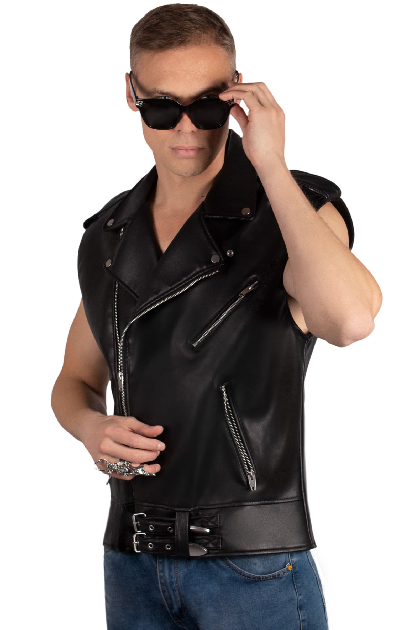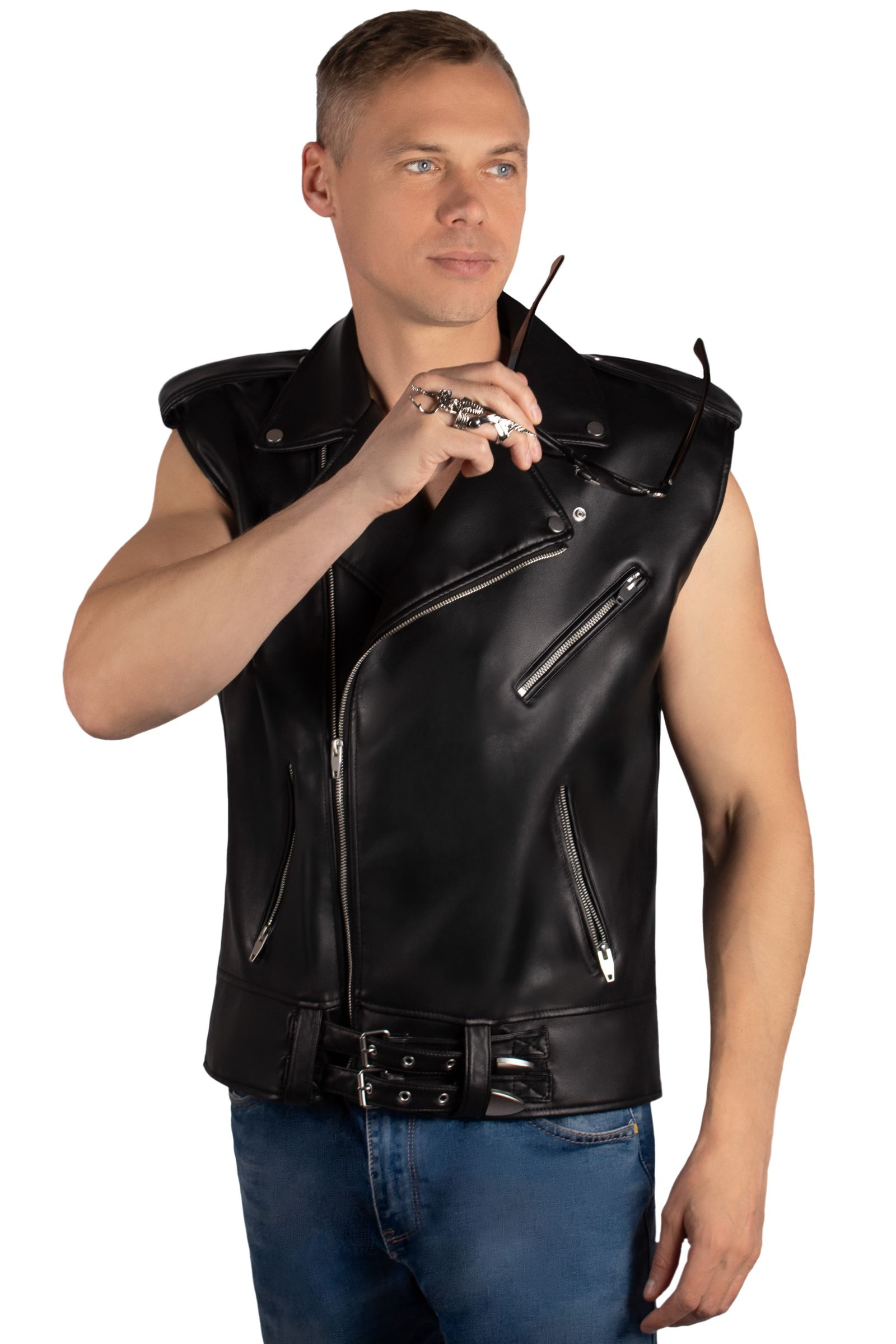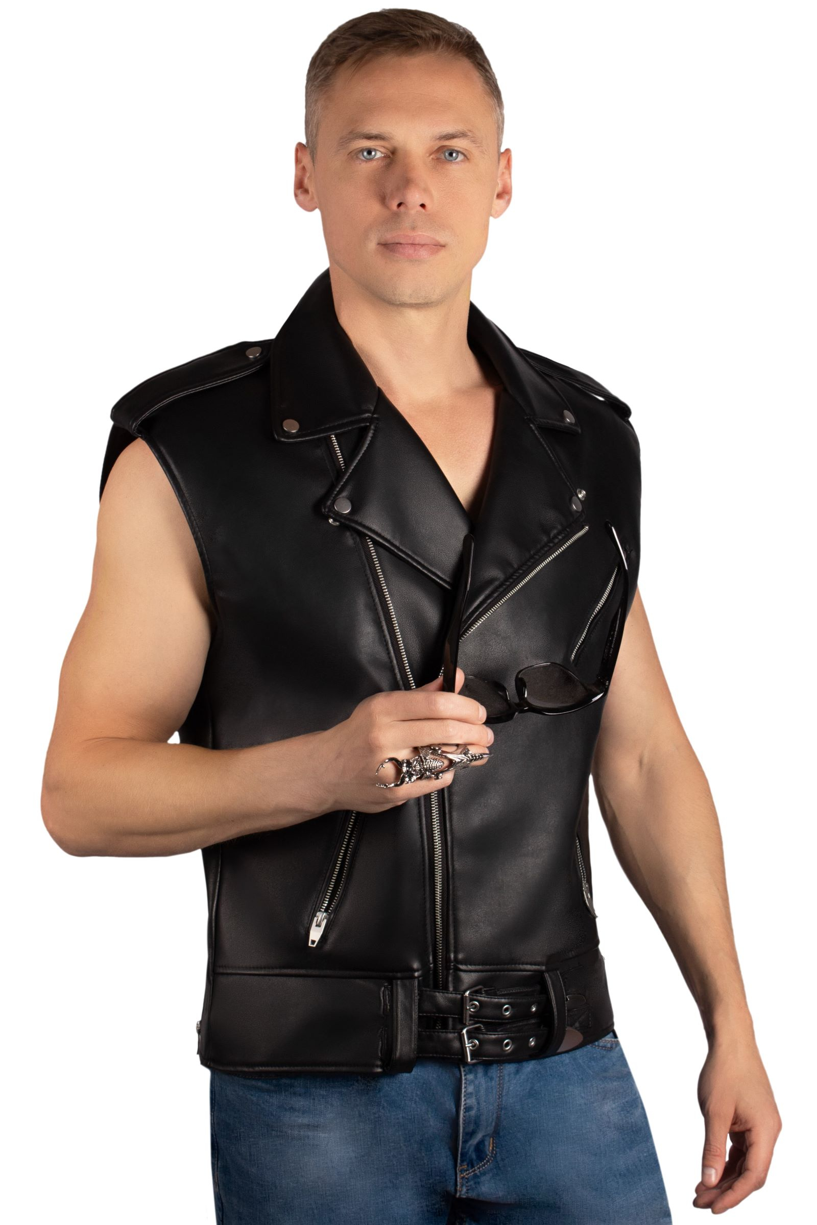 Этот жилет — идеальный выбор для тех, кто хочет создать дерзкий и узнаваемый стиль. Он сочетает в себе классический дизайн байкерской косухи и удобство безрукавки.