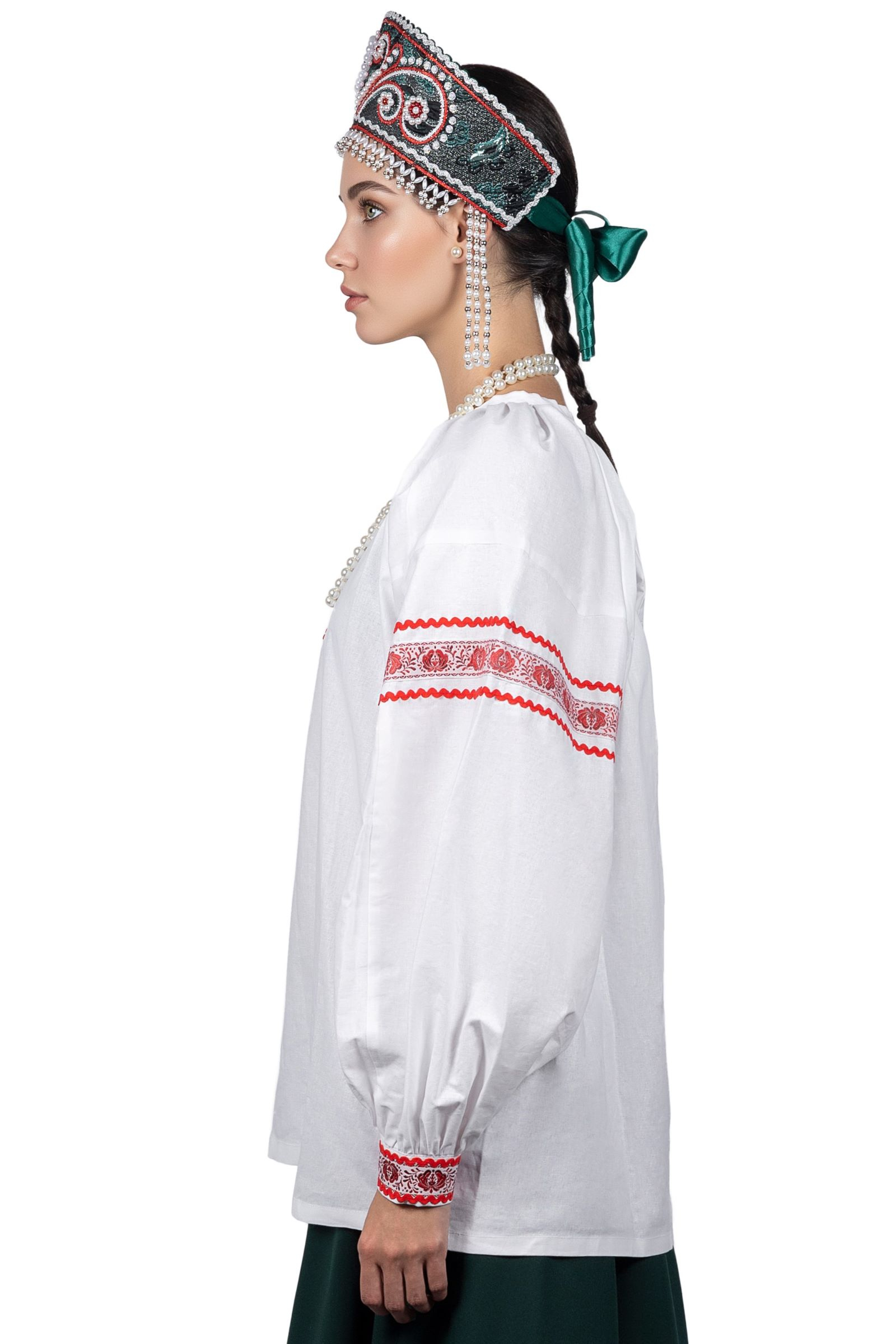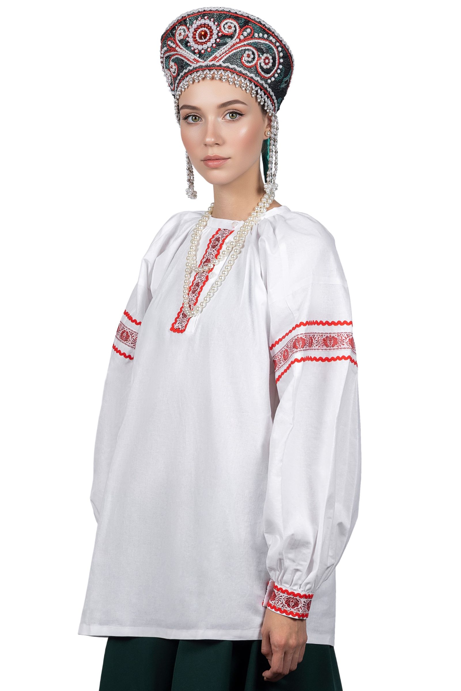 Ищете идеальный наряд для театральной постановки, фильма или ансамбля? Представленная на нашем сайте белая блузка в русском стиле сочетает в себе изысканность,